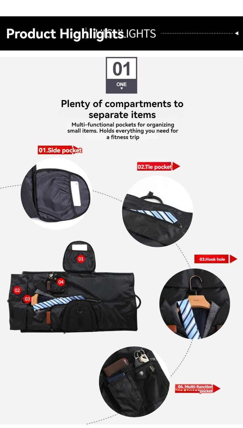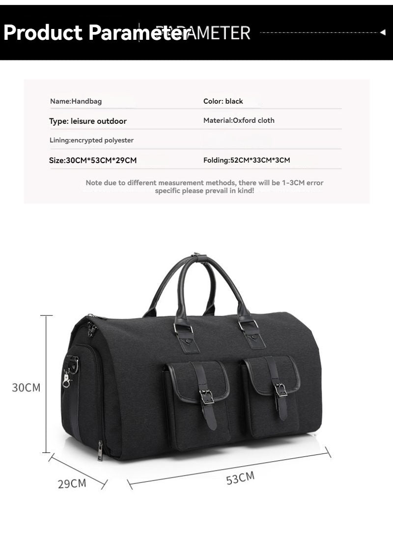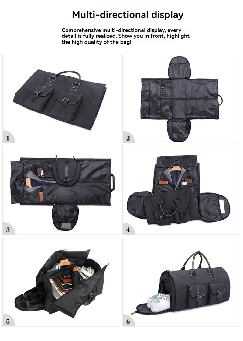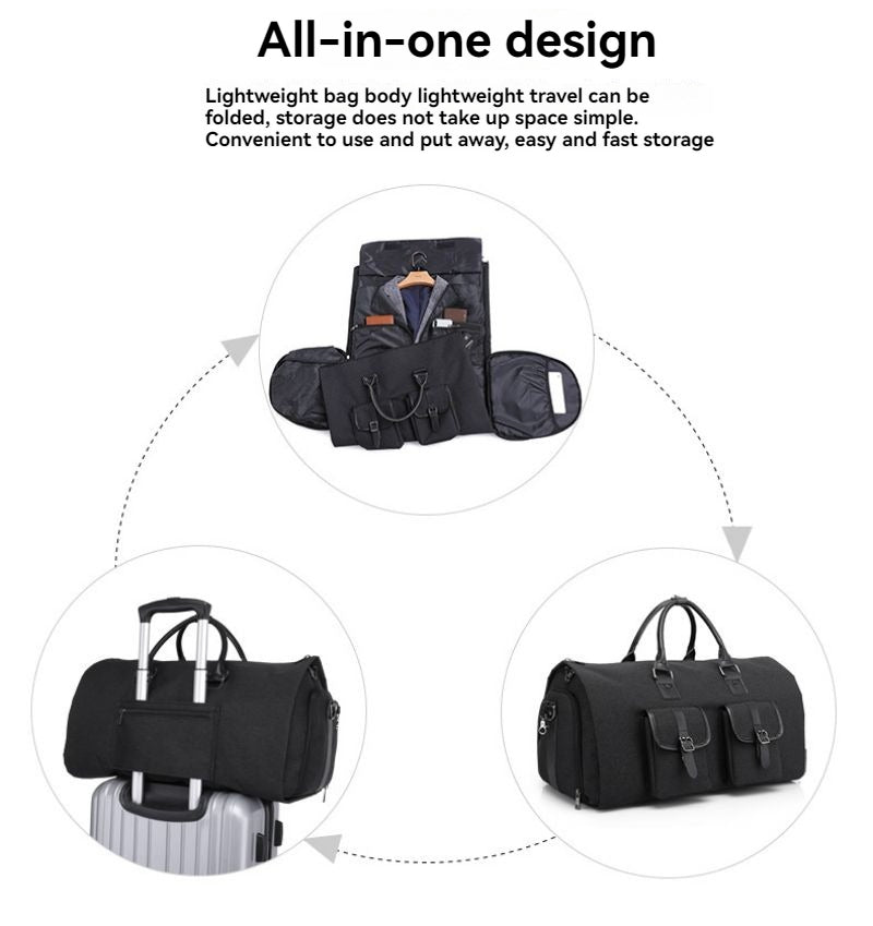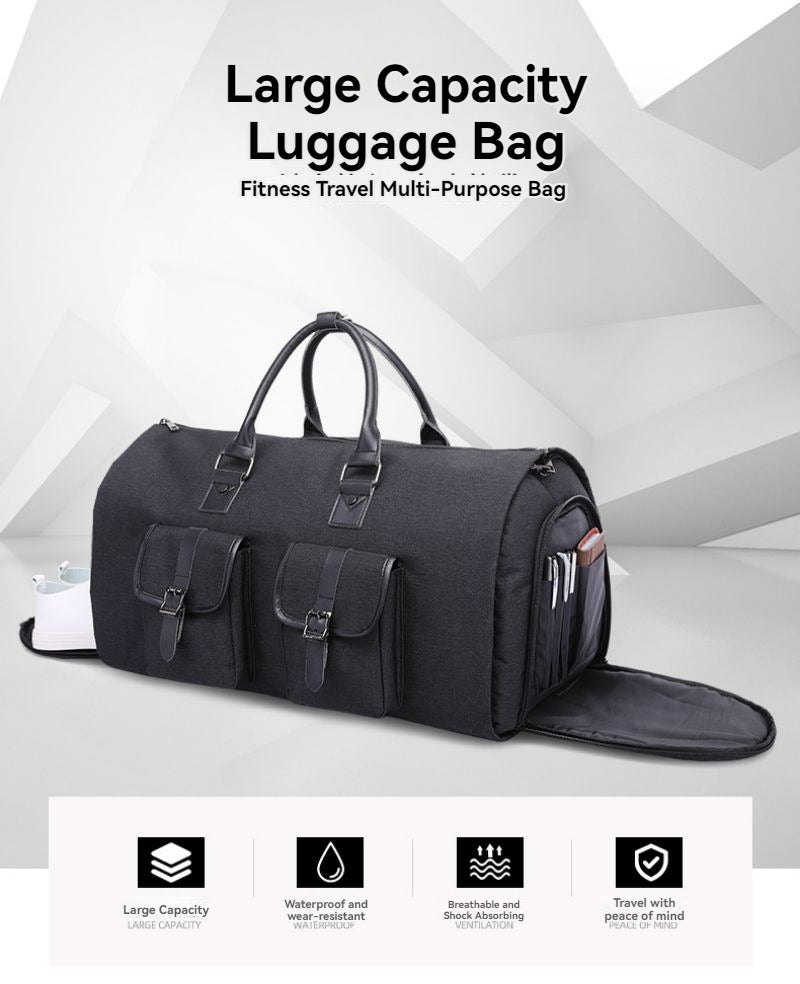 New Men's Waterproof Weekend Travel Bag Business Large Capacity Multifunctional Convertible Handbag 2 in 1 Luggage Storage Bag